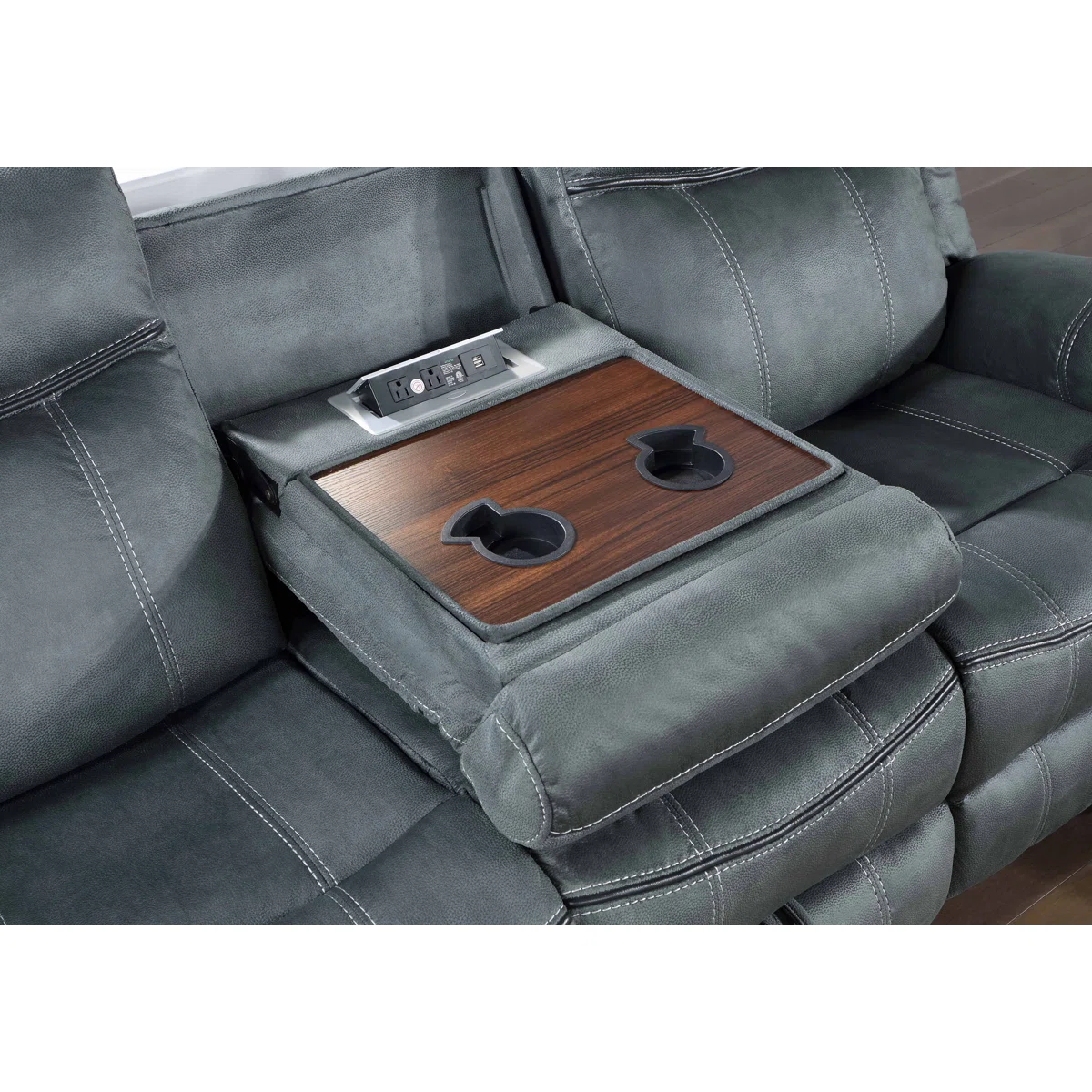 - Built-in storage, drop-down tables, and USB/power outlets in select pieces for convenience.