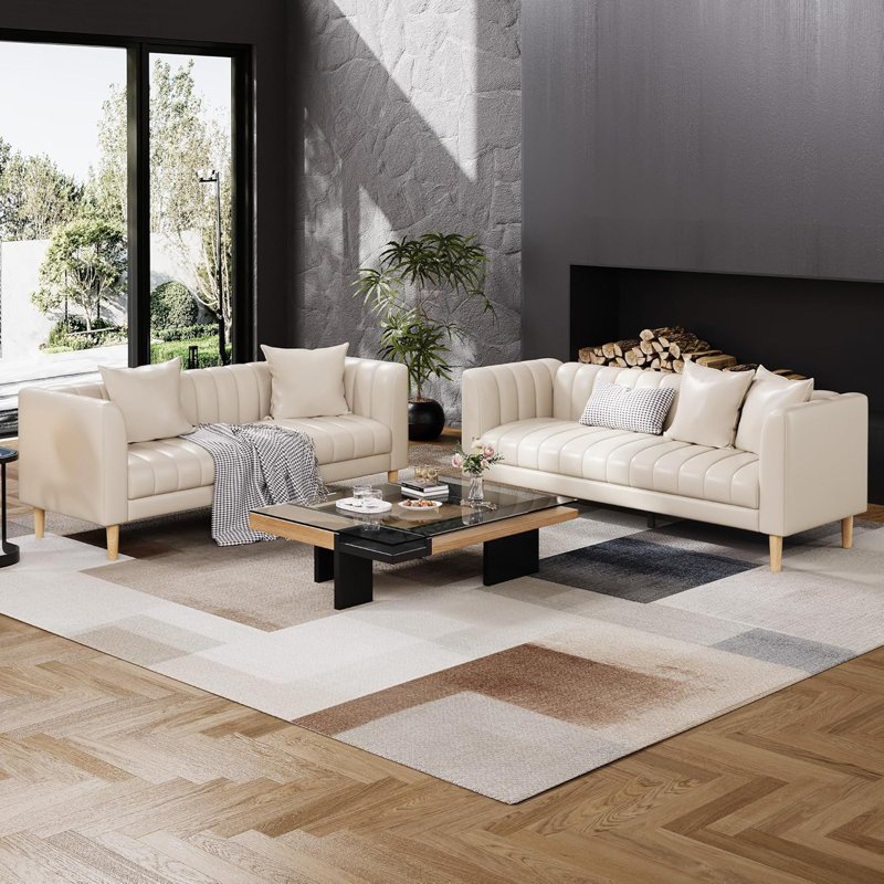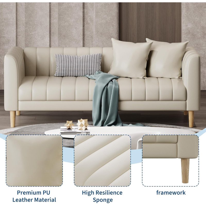 Upgrade your living space with this contemporary 78-inch faux leather sofa, designed for both style and comfort. Featuring plush deep seats, sturdy wooden legs, and 2 included throw pillows, this 3-seater couch brings modern elegance to any room while offering exceptional durability and easy maintenance.